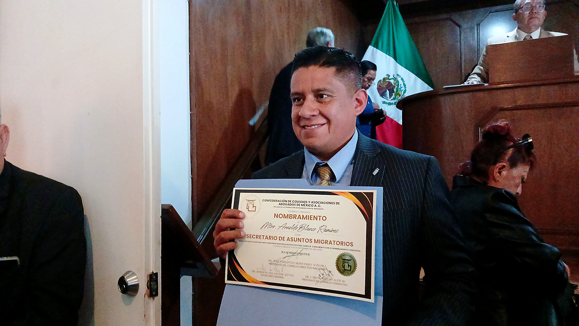 🙏 En su intervención, el Lic. Arnoldo Blanco expresó su más profundo agradecimiento por la confianza depositada en su persona, reiterando su compromiso de trabajar incansablemente por la unidad del gremio jurídico, el fortalecimiento de la capacitación profesional y la consolidación de la División Internacional de Derechos Humanos, un pilar que busca apoyar a quienes más lo necesitan y garantizar que los derechos fundamentales de cada mexicano sean respetados, sin importar raza, color o etnia.